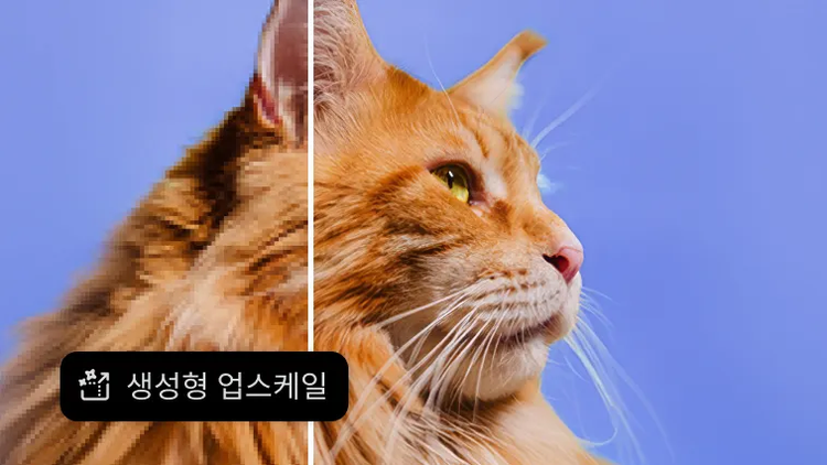 더 높은 해상도, 더 깔끔한 가장자리, 더 선명한 디테일을 경험하세요. 최신 생성형 채우기, 확장, 제거 도구 모델로 더욱 실감나는 결과를 얻을 수 있습니다.