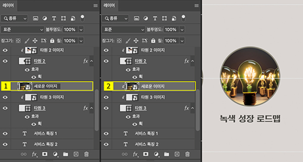 저장한 이미지는 ‘파일’ > ‘포함 가져오기’로 불러올 수 있습니다. 새로운 이미지 레이어는 아래와 같이 배치해 주세요.