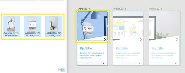 11. 폴더에서 준비되어 있는 이미지들 선택 > 첫번째 프레임 안으로 드래그&드롭