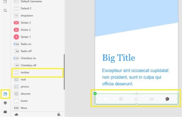 7. [라이브러리] 아이콘 클릭 > 화면에 삽입할 구성 요소 선택 후 드래그&드롭