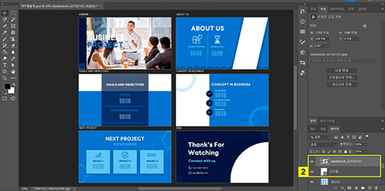 - 포토샵의 무료 PPT 템플릿 사이트에서 파워포인트 템플릿 다운받아 열기