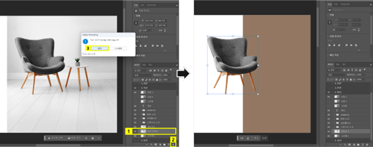 - ‘레이어’ 패널에서 [소파 이미지] 레이어 클릭