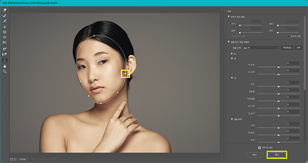 피부 보정이 끝났다면, 이미지의 픽셀 유동화를 활용해 나머지 디테일을 보정해줄 차례입니다.