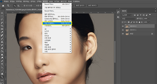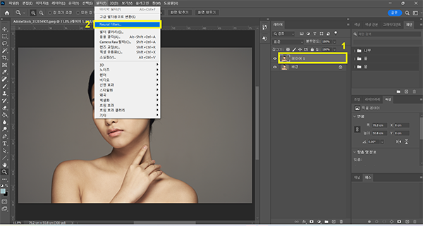 - 상단 메뉴 에서 필터 > Neural Filters 선택