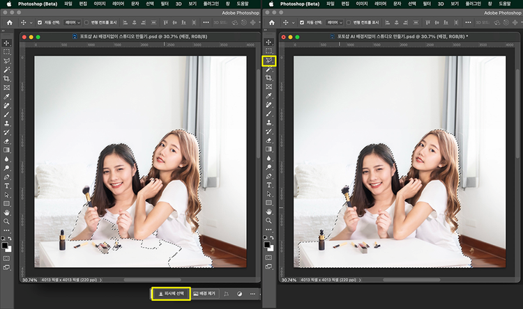 그럼 포토샵 AI 시작하기와 함께 스튜디오와 같은 사진 배경 합성 방법을 알아보겠습니다.
