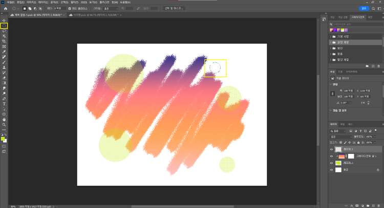 포토샵은 다양한 브러시 질감을 제공합니다. 일반 브러시부터 유화, 수채화, 특수 효과 브러시까지 다양한 질감을 직접 활용할 수 있죠. 어려운 드로잉 툴 없이도 훨씬 다채로운 느낌을 선사할 수 있습니다.