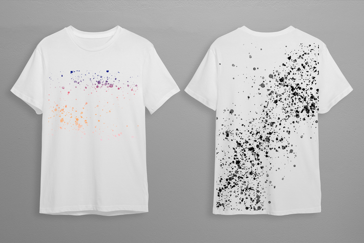 제품 제작에도 포토샵 브러시 기능을 활용해보세요. 물감을 뿌린 듯한 멋진 티셔츠 디자인을 만들어 제품 포트폴리오 다각화해 매출을 높일 수 있습니다.