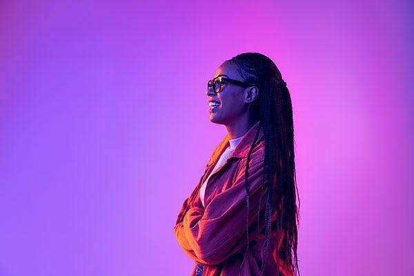 인물 사진에서 트렌디하고 강렬한 네온 조명효과를 내는 데에 꼭 특수한 색조명 장치가 필요한 것은 아닙니다. 초보자도 쉽게 시도해 볼 수 있는 방법은 여러 색상의 셀로판지를 준비한 뒤 플래시 헤드에 원하는 색을 부착하고 플래시를 터뜨려 촬영하는 것입니다. 두 가지 색상의 셀로판지 플래시를 사용할 때는 피사체와의 거리, 각도, 두 색의 밸런스 등을 잘 조정하여 여러 번 촬영하면서 원하는 색감을 찾아보세요.