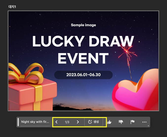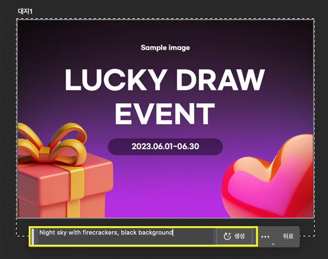 - 생성형 버튼을 클릭 > 원하는 배경 이미지를 설명하는 스크립트 입력