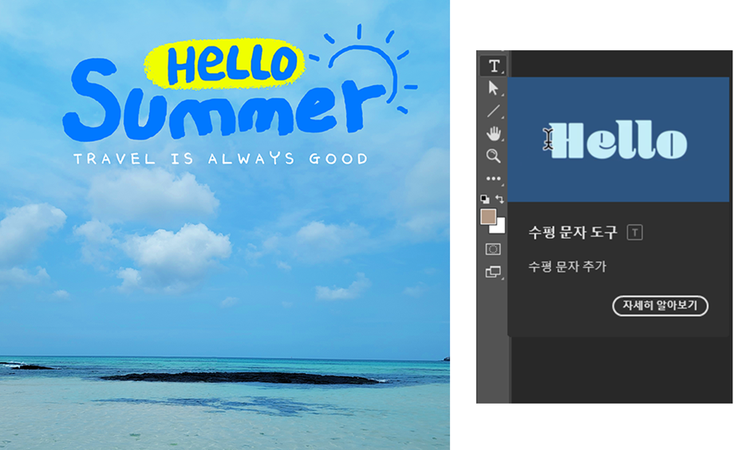 - ‘문자 도구’를 이용하여 Travel is always good 쓰고 간격 맞추기