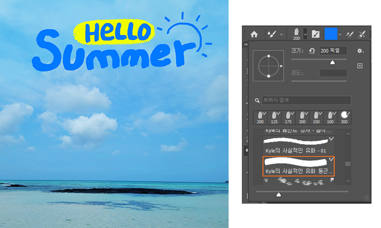 - 수채화 재질 브러시에서 KYLE 사실적인 유화 둥근 플렉스 브러시로 Summer 쓰기