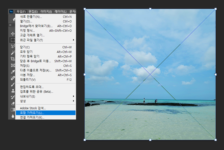 - ‘파일’ > ‘포함 가져오기’ 에서 여행 사진 불러오기