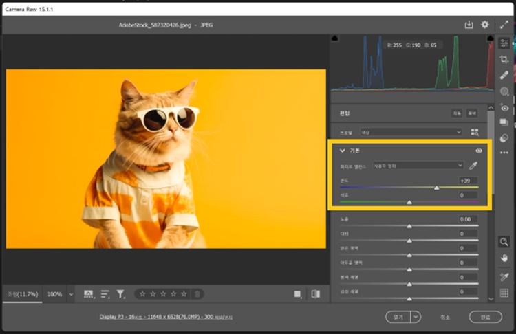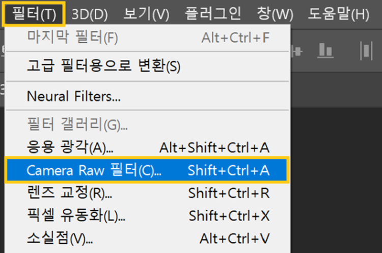 - [필터] > [Camera Raw 필터] 선택