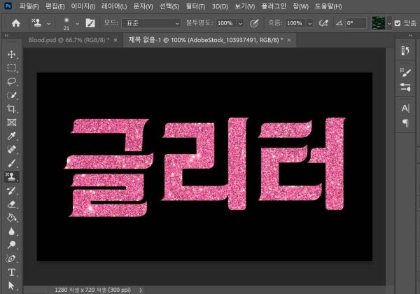 포토샵 클리핑 마스크로 글자에 글리터 효과 추가하기