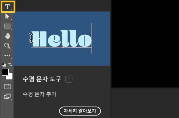 - 좌측 ‘도구’ 패널 > ‘텍스트 도구’ 클릭