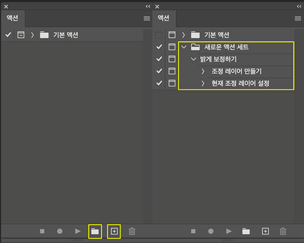 - 하단의 ‘새 액션 만들기’ 아이콘 클릭