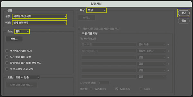 - 상단 메뉴 바 > 파일 > 스크립트 > ‘이미지 프로세서’ 클릭