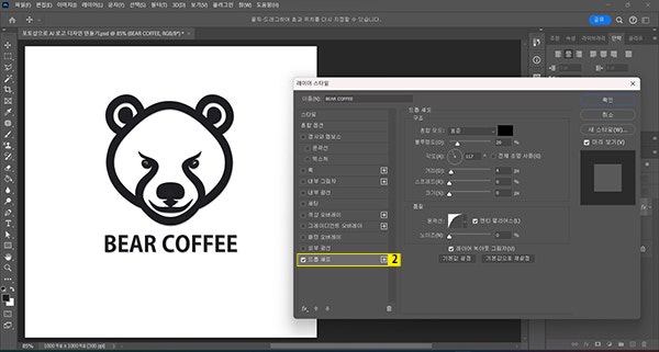 - [BEAR COFFEE] 레이어 선택 후 마우스 오른쪽 버튼 > 레이어 스타일 래스터화 하여 로고 완성하기