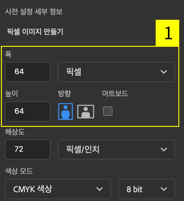 - ‘64x64(px)’ 사이즈 캔버스 만들기