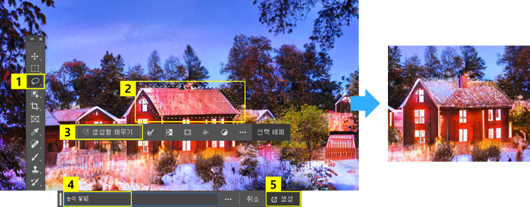 ‘생성형 채우기'로 크리스마스 오브젝트 추가하기