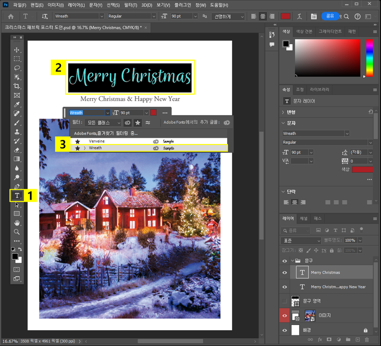 텍스트 도구로 포스터 문구 및 폰트 변경하기