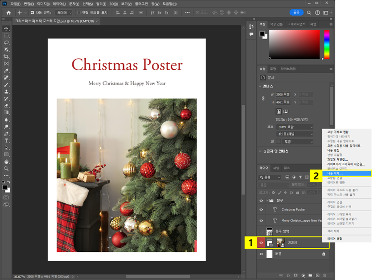 1. 우측 ‘레이어’ 패널 > [이미지] 레이어 ‘마우스 오른쪽 버튼’ 클릭