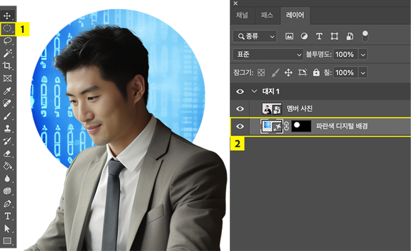 - [원형 레이어]를 [멤버 사진] 레이어 아래에 배치