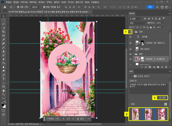 생성형 채우기로 커버 이미지와 어울리는 배경 만들기