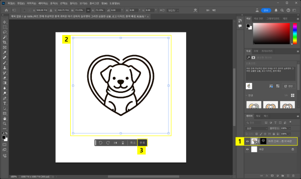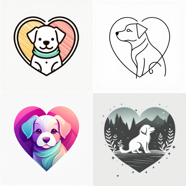 (하트 안에 추상적인 흰색 귀여운 아기 강아지 실루엣이 그려진 심플한 심볼, 로고 디자인, 흰색 배경) - ‘콘텐츠 유형’ 옵션 > ‘아트’ 선택하기