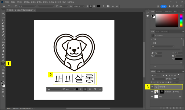 - 우측 ‘레이어’ 패널 > 텍스트 레이어 클릭하여 활성화
