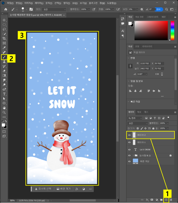 눈사람 일러스트 배경화면 배경 색상 바꾸기