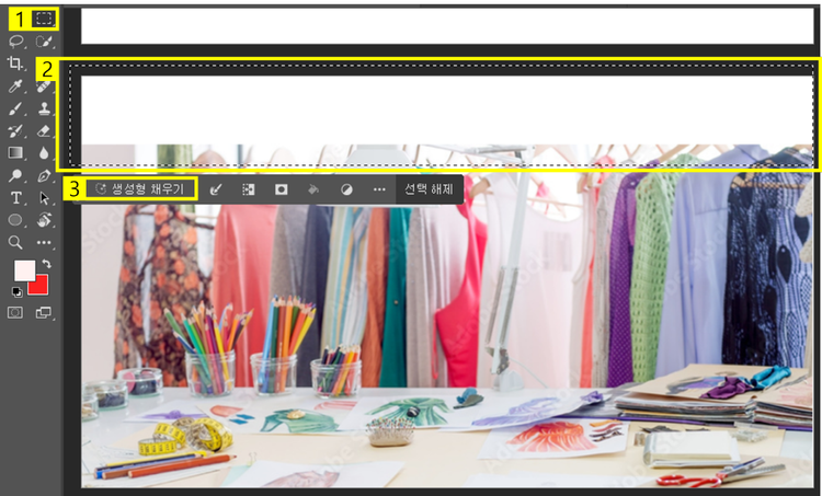 뿐만 아니라 PPT 템플릿의 이미지 소스를 수정하고 싶을 때는 포토샵 AI 기능인 생성형 채우기를 활용해 보세요. 프롬프트에 따라 이미지를 바로 생성해주기 때문에, 이미지 소스를 찾거나 편집해야 하는 번거로움을 줄일 수 있습니다.