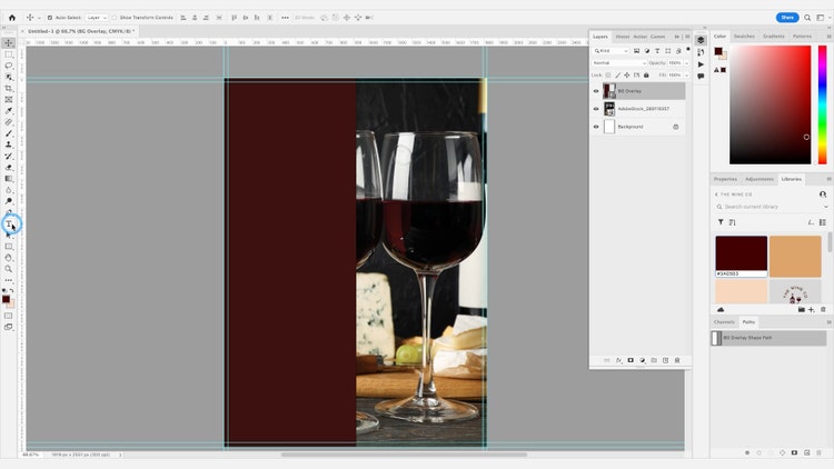 툴바에서 사각형 툴을 클릭하여 텍스트를 배치할 지점에 사각형을 만듭니다. 홍보 자료를 매력적으로 만들려면 텍스트와 이미지가 완벽한 균형을 이뤄야 합니다. 텍스트를 읽기 쉬운 위치에 배치하세요.