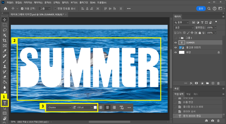 포토샵을 활용하여 텍스트에 이미지를 입혀 감각적인 타이포그래피 디자인해보세요.