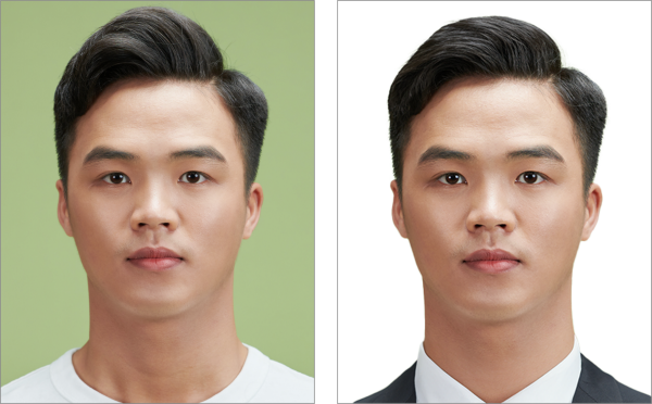 개체 선택 도구를 사용하여 여권 사진의 배경색을 쉽게 변경해 보세요. 여권 사진 규격에 따르면, 배경은 균일하고 잉크 자국이 없는 흰색이며, 테두리가 없어야 합니다.