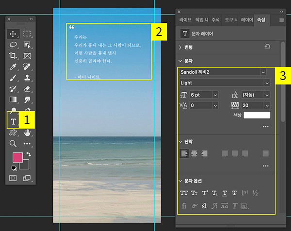 - 도구 모음에서 ‘텍스트 도구’ 선택
