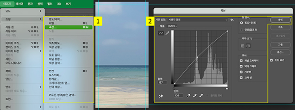- ‘이미지’ > ‘조정’ > 곡선’ 선택