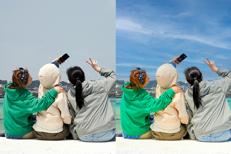 - 파란 하늘 뿐 아니라 무지개 등 다양한 무드의 하늘 합성이 가능합니다.