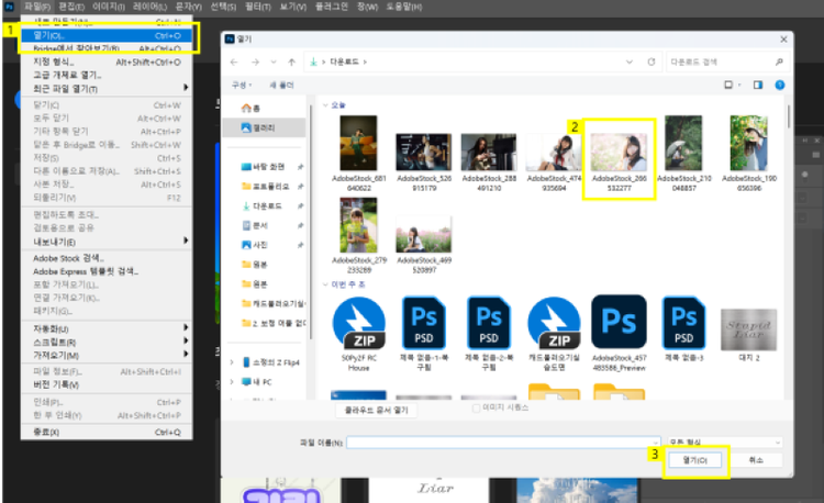 먼저, 이미지를 불러오도록 하겠습니다. 포토샵에서 이미지 불러오는 자세한 방법이 궁금하다면 아래 영상을 참고해주세요.