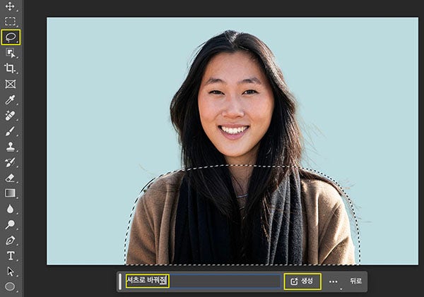 생성형 채우기로 증명사진 배경과 복장 바꾸기