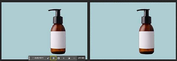 생성형 채우기는 간단한 텍스트를 입력해 원하는 부분을 수정할 수 있는 기능입니다. 제품 사진 이미지의 배경을 변경하기 위해서는 우선 배경을 지정해야 합니다. 일일이 배경을 지정하지 않아도, 클릭 몇 번으로 손쉽게 가능하죠.