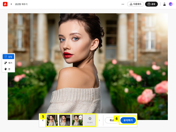 - 콘텐츠 보존: 이미지에 있는 원래 콘텐츠에서 어느 정도를 그대로 유지할지 선택