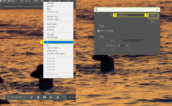 내용 인식 채우기로 인물 지우기