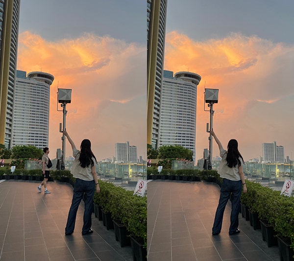 포토샵에서는 손쉽게 사람을 지울 수 있습니다. 일일이 누끼 따기 작업을 하지 않아도 개체 선택 도구로 불필요한 개체를 한 번에 선택할 수 있죠. 이어 선택 영역 삭제 및 채우기 기능을 활용하면 별도의 합성 작업 없이 포토샵이 주변 배경을 인식해 자연스럽게 배경을 합성해 줍니다.