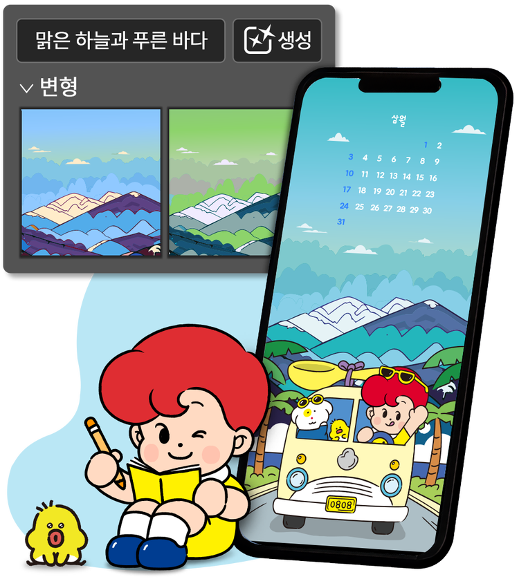 로고부터 굿즈, 이모티콘까지 다양한 작품을 만들어 보세요.