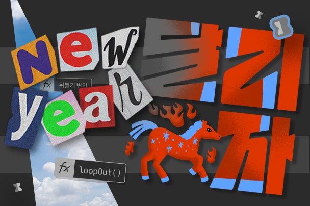 신년을 맞아 선보이는 디지털 콜라주와 붉은 말 타이포그래피를