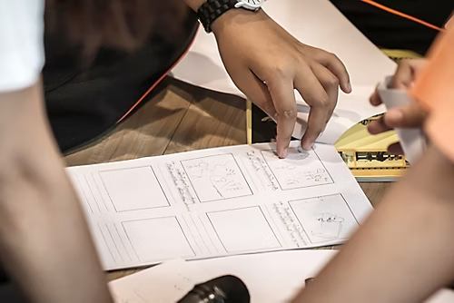 - 촬영 감독은 스토리보드를 참고하면서 촬영에 임합니다. 스토리보드를 작성하는 방법을 살펴보세요. 각 샷을 하나씩 스케치하여 영화의 큰 윤곽을 잡습니다.