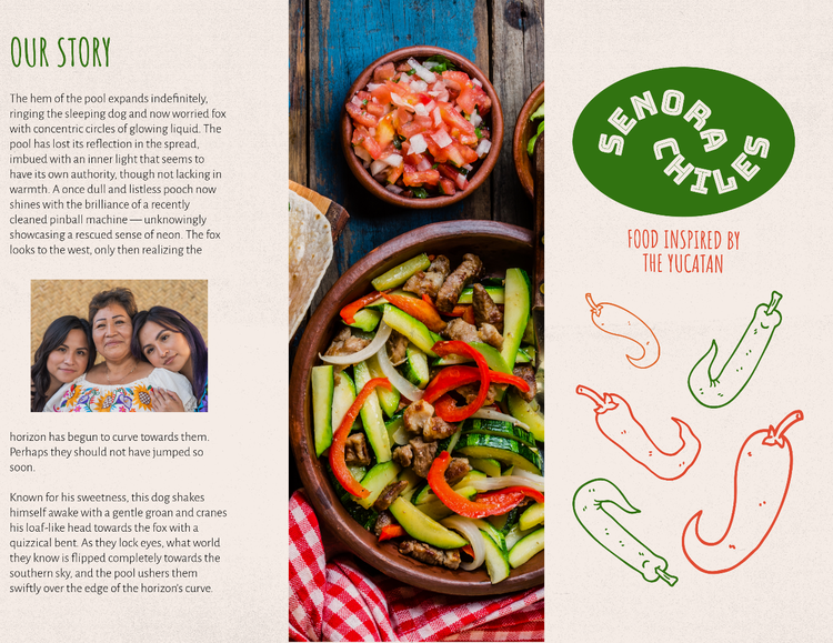 브로슈어 레이아웃에 맞게 원하는 대로 텍스트를 배열하세요. 텍스트 흐름을 사용하여 텍스트 상자를 연결하면 하나의 텍스트 상자 크기를 조정하고 텍스트가 자동으로 다음 상자로 이동할 수 있으므로 추가 조정이나 서식이 필요하지 않습니다. 3패널 브로슈어 디자인의 공간 크기에 맞게 긴 문단을 여러 개의 조정 가능한 열로 분할합니다. 아니면 제품 사진을 활용하여 텍스트를 여러 블록으로 나누면 에디토리얼 느낌을 연출할 수 있습니다.