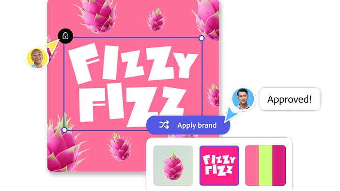 브랜드 키트, 템플릿 잠금, 스타일 제어, 실시간 협업 툴을 사용해 누구나 일관성 있게 디자인 콘텐츠를 제작할 수 있습니다.