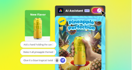 인물의 포즈를 바꾸고, 개체를 교체하고, 스타일에 변화를 주고, 모션을 더해보세요. AI 어시스턴트(Beta)로 이미지 및 디자인 변형이 더 빠르고 수월해졌습니다. 이용에 제한이 있습니다.2